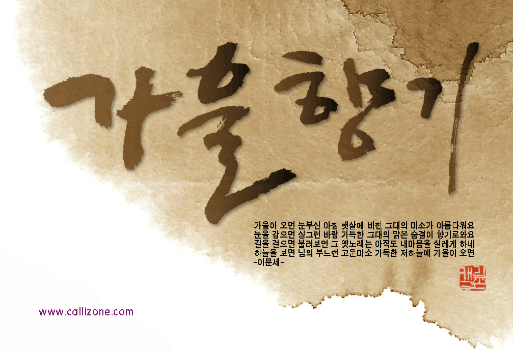 [직접쓴 캘리} 가을향기 callizone 일반 1 9330 2007.10.02 14:07 http://www.callizone.com/home/index.php + 561 가을이 익어가고 있습니다. 가을을 음미하면서 한번 만들어 보았습니다. 회원님들 감기조심 하세요^^